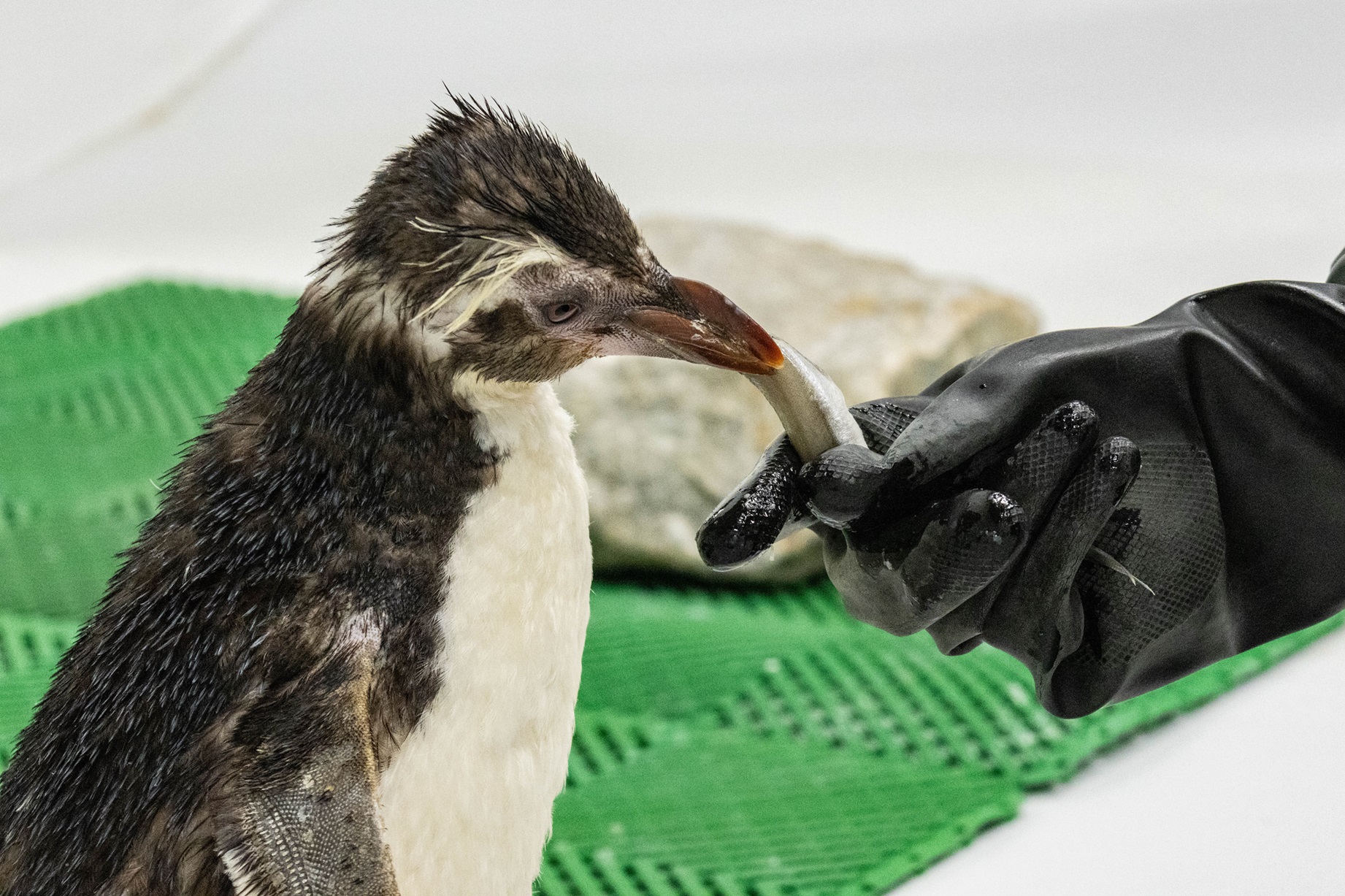 On 25 November 2024, 4-year-old Riki and 3-year-old female Peach became first-time parents when they welcomed their first chick. Two days later on 27 November 2024, a second chick successfully hatched. However, the keepers noticed that the second chick was being underfed, as the parents struggled to meet the demands of feeding two chicks. To maximise the chance of survival of both chicks, the penguin care team decided to lend a hand and retrieve the second chick for hand raising. The 8-day old chick is now being cared for under the watchful eyes of the penguin care team.
