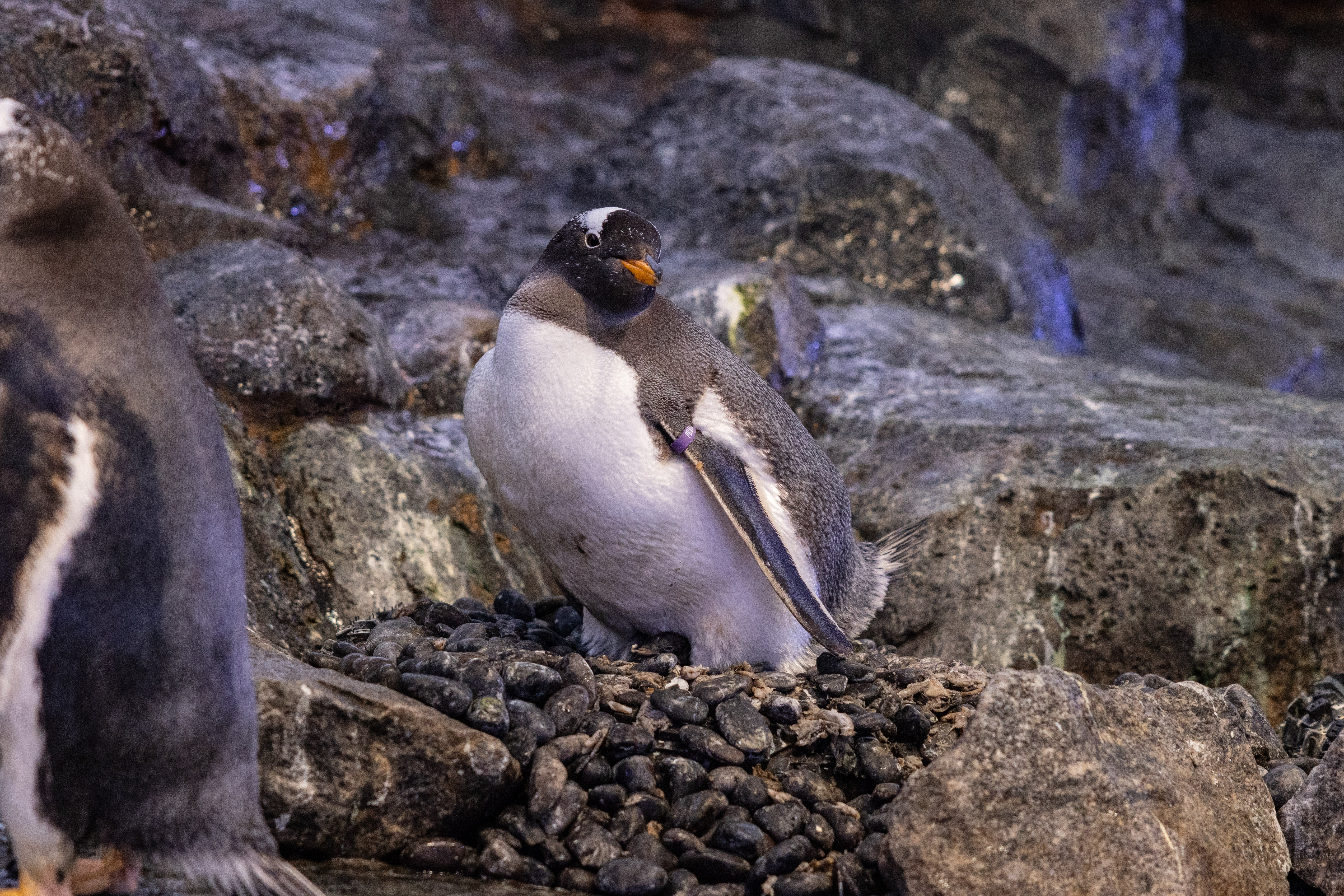 While the first chick is being carefully tended to by its attentive parents, visitors with a keen eye might be able to catch a glimpse of it nestled beneath them as it grows stronger. Meanwhile, the second chick is being hand-raised in the Research Room located on the third floor of the Ocean Network Express Penguin Cove. Visitors can have the opportunity to observe the young penguin being fed and cared for by checking the whiteboard by the window for feeding times.