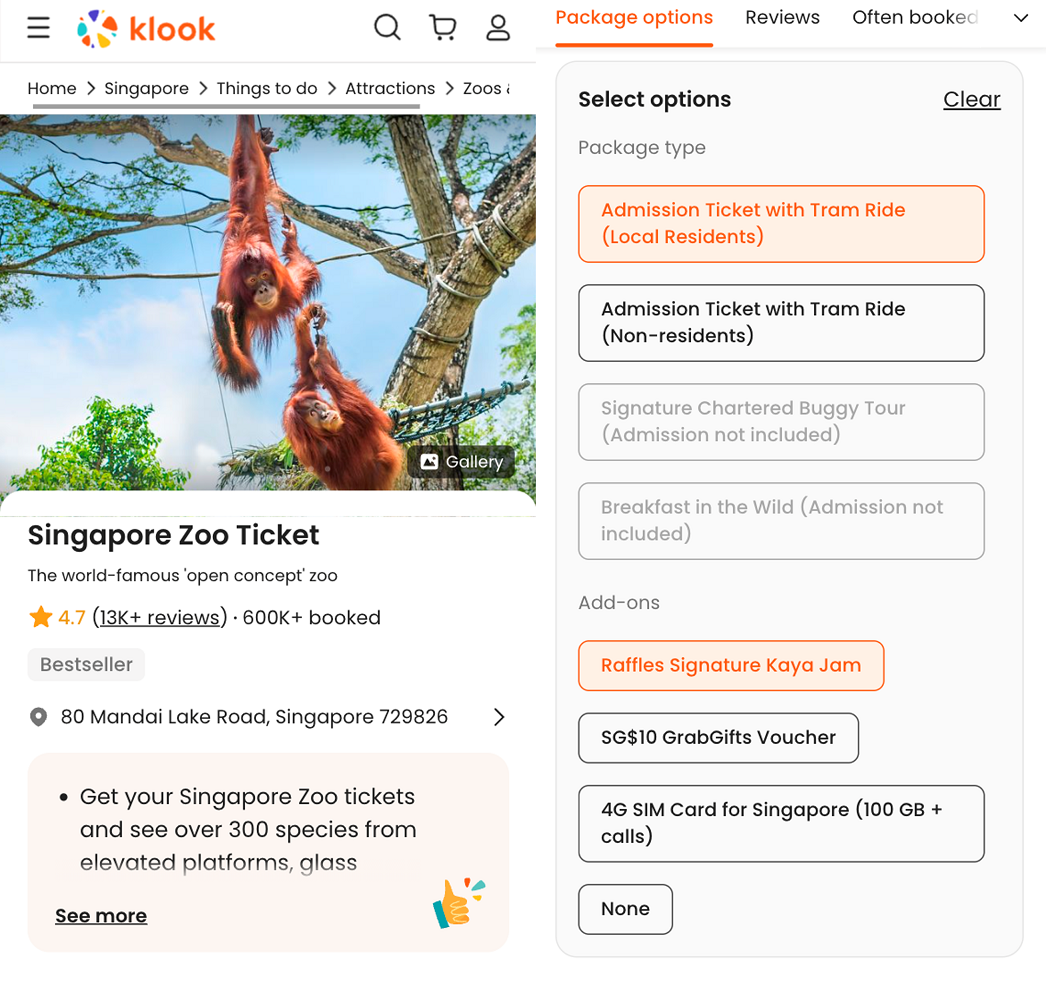 Under the collaboration between Klook and Mandai Wildlife Group, travellers will be able to choose from various bundles that best fit their needs.