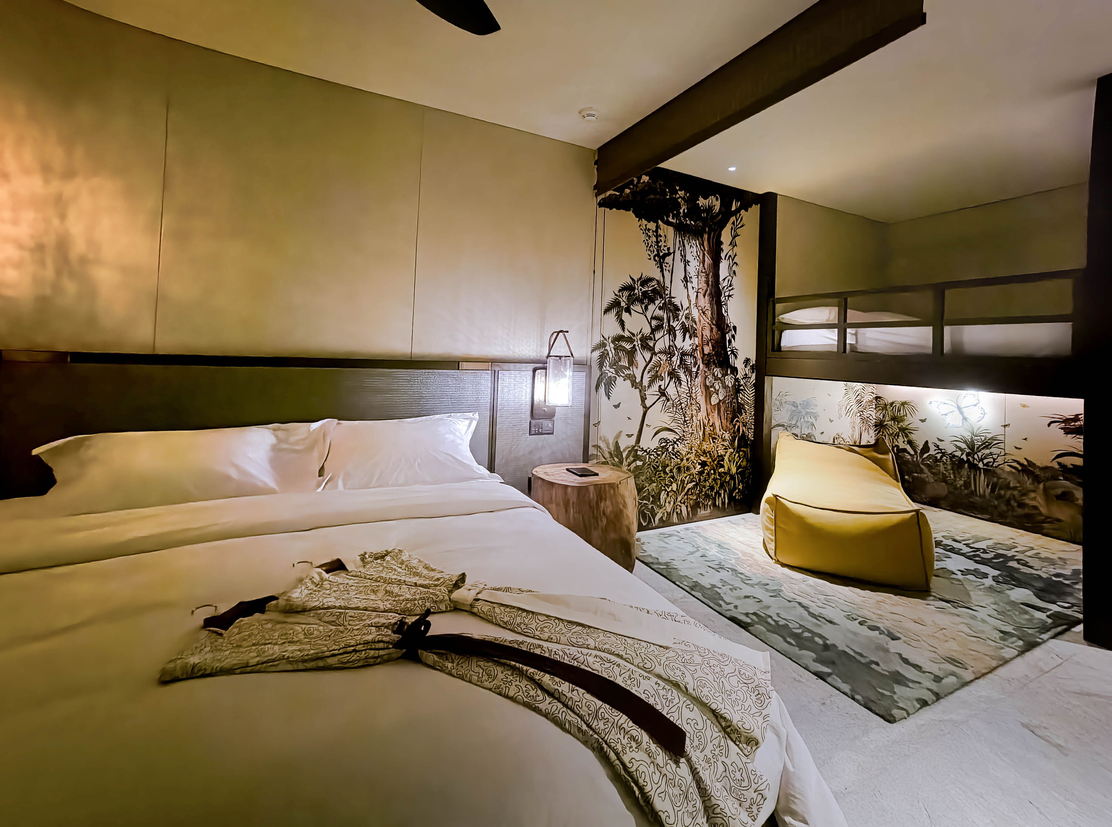 A loft bed and dedicated children’s corner in a family room at the Mandai Rainforest Resort offers a cozy retreat ideal for families as they connect with nature and explore the wildlife parks in the Mandai Wildlife Reserve.