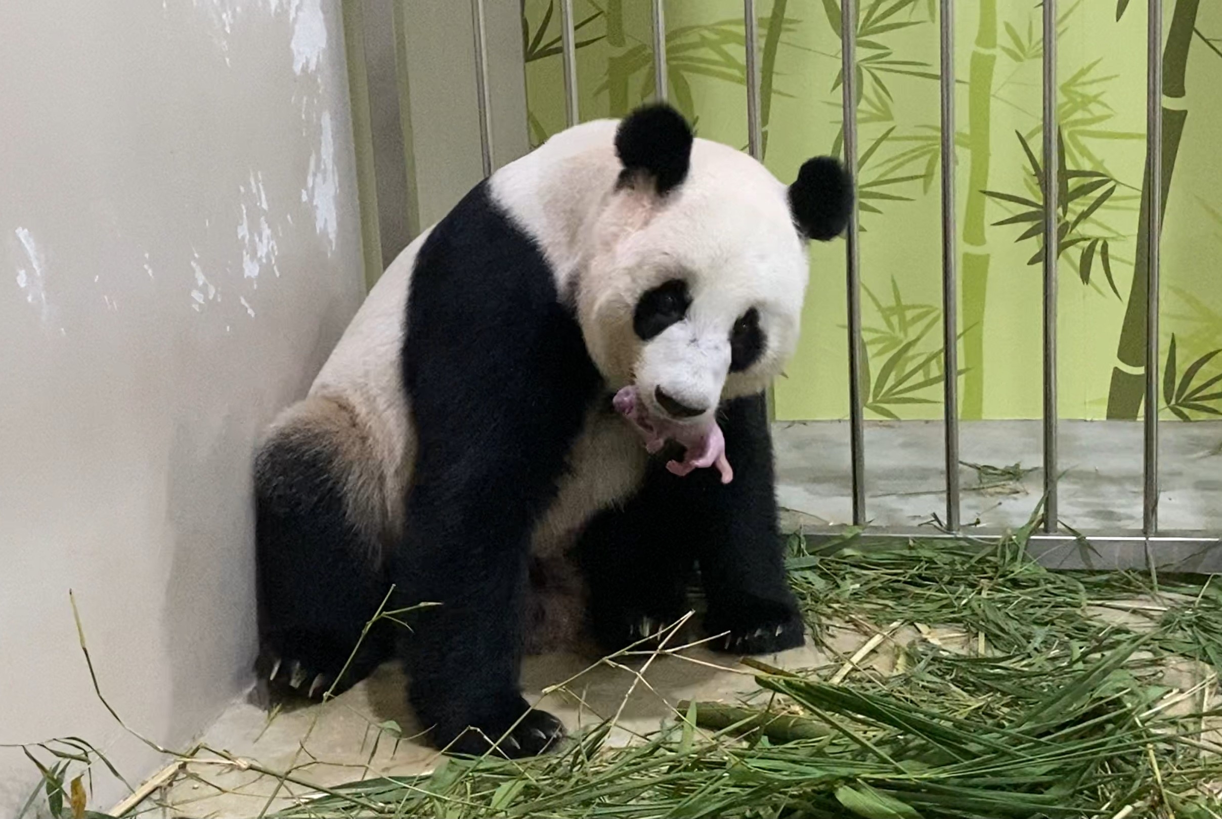 River Safari’s first giant panda cub being cradled by Jia Jia, a first-time mother. The baby was born at 7.50am on 14 August 2021.