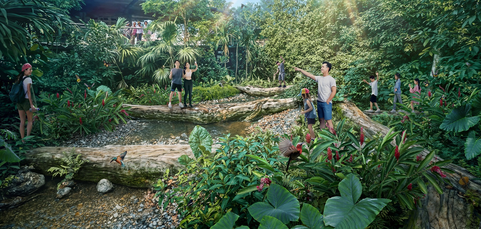 Guests will have to duck below fallen trees or climb over logs as they descend to the Forest Floor before making their way to the Rock Cascade, home to the charismatic Malayan tiger. Guests can watch the majestic cats show off their power and agility as they navigate waterfalls, streams, rocky outcrops and clusters of trees. The Canopy will give visitors a glimpse into life at the treetops and chance encounters with species like the Javan langur and red-shanked douc langur.