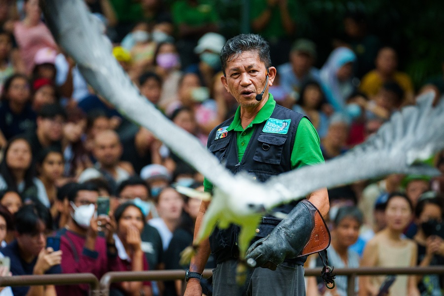 Clarence Saw, Senior Manager, Animal Behaviour and Programmes at Mandai Wildlife Group presents Kings of the Skies with a White-bellied Sea Eagle for the last time.
