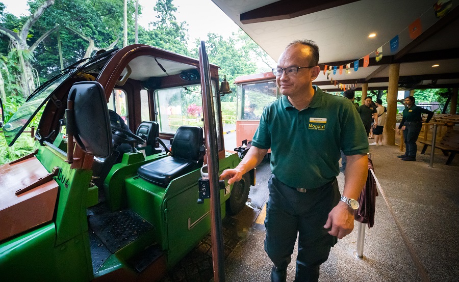 Tram captain, Raymond Loh, boards the tram for a final drive around Jurong Bird Park. The tram ride offered a scenic way to enjoy the flora and avian fauna of the park over the years.
