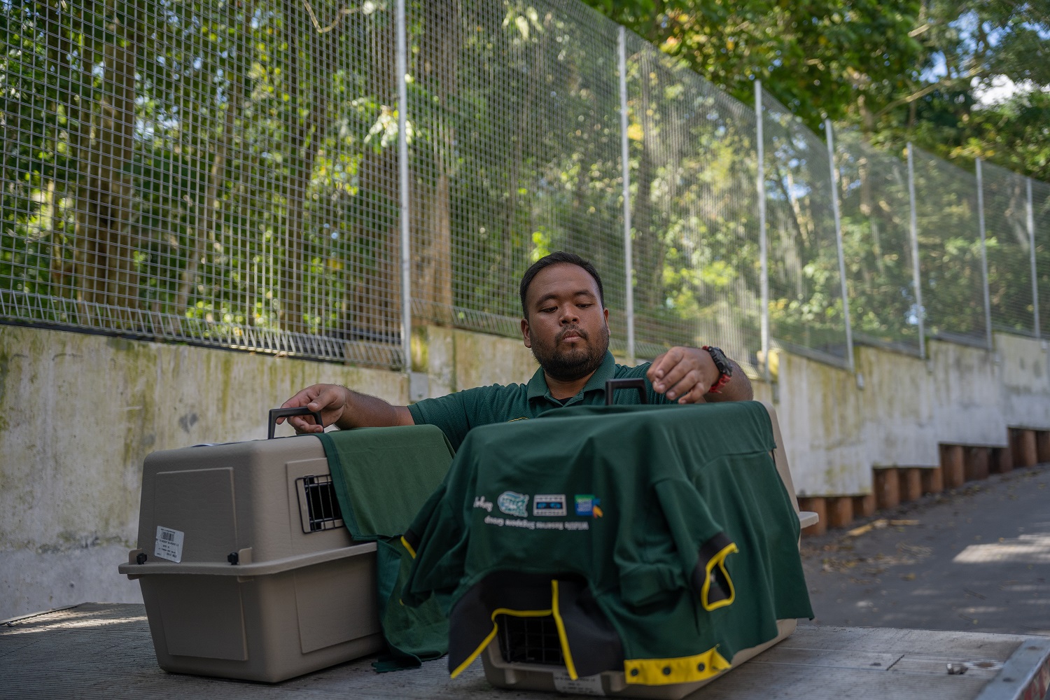 Zaid Harithsah, a keeper from the Animal Care team, loads up the pet boxes to the truck for the birds’ onward journey to Bird Paradise.