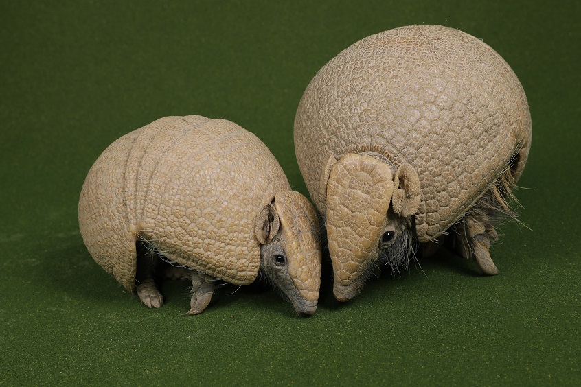 Night Safari’s first armadillo pup (left) and its mother, Rolar (right). The pup was born on 5 September 2020, a boost to the genetic diversity of the near threatened species under human care.