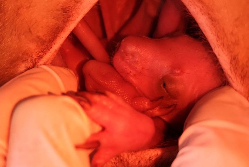 Nupela’s dedicated care team witnessed the birth and the joey’s epic crawl into mom’s pouch. The bond and trust between mum and her keepers allow daily checks on Nupela’s pouch to monitor the baby’s growth and record significant developments including the moment when the joey popped his hairless head out of the pouch on 7 July 2020 for a look-around.