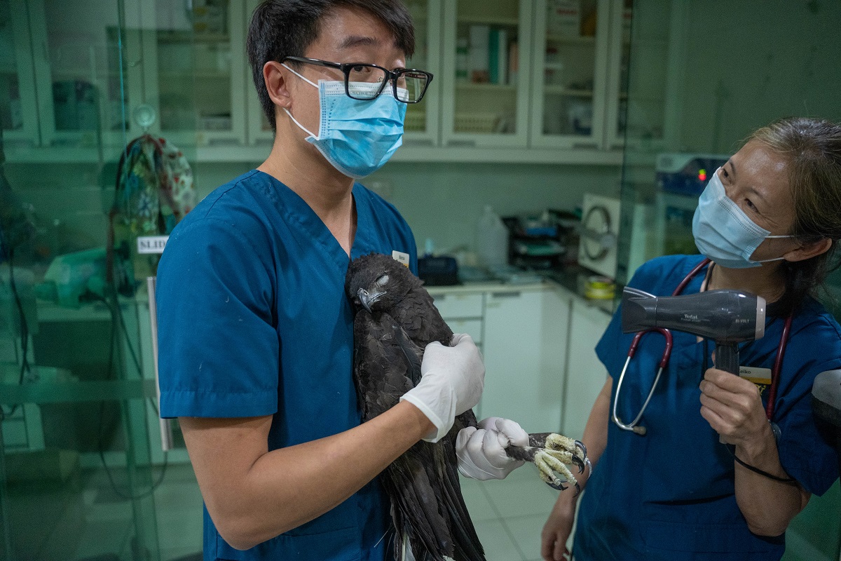 A changeable hawk-eagle was rescued by the National Parks Board (NParks) and brought to Jurong Bird Park’s avian hospital for treatment. It was found with burnt feathers on its wings and tail which rendered it incapable of flight.