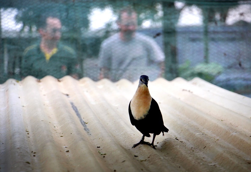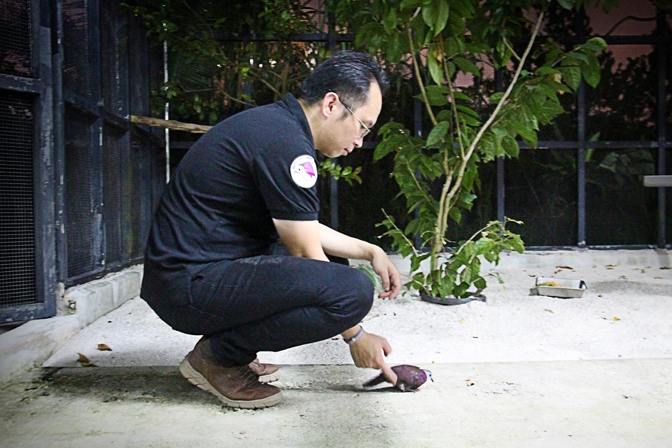 Assistant Curator Mr Ivan Choo releases one of the male Santa Cruz Ground-Doves into the park’s quarantine facility on 11 August. The doves will remain in quarantine for a month.