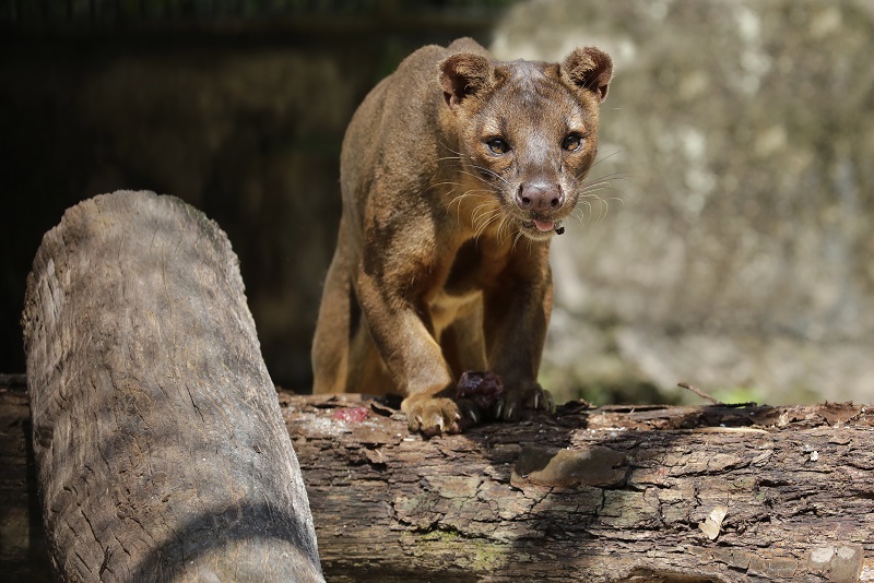 Compared to Varus the male fossa, Kabibi has a shy demeanor. The two will share the exhibit on a rotational basis, as fossas are solitary animals by nature.