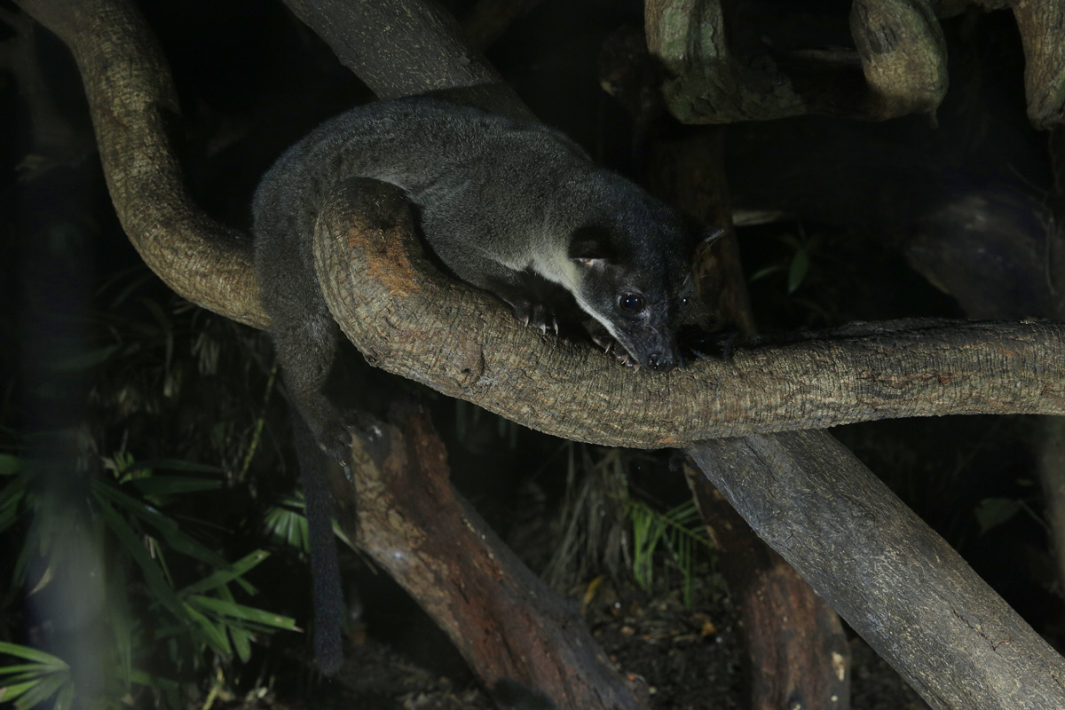 At the Fishing Cat Trail, two species new to Night Safari, the Brazilian Porcupine and Grey-handed Night Monkey will take up residence in the new mixed-species habitat featuring small arboreal mammals native to South America. The Brazilian Porcupine has a characteristic prehensile tail the length of its body that helps with its climbing abilities while the Grey-handed Night Monkey is one of the few true nocturnal monkeys in the world. Grey-handed Night Monkeys are listed as Vulnerable under the International Union for Conservation of Nature (IUCN) Red List. A pair of Brazilian Porcupines has debuted in the Fishing Cat Trail exhibit while a pair of Grey-handed Night Monkeys will soon join them later this month. Both species were from zoos in Europe, under the European Studbook (ESB) programme recommendations. The ESB is an international studbook that issues breeding and transfer recommendations to ensure genetically diverse populations under human care. The Kinkajou, a small mammal related to Raccoons and Coatimundis, will also be sharing the exhibit.