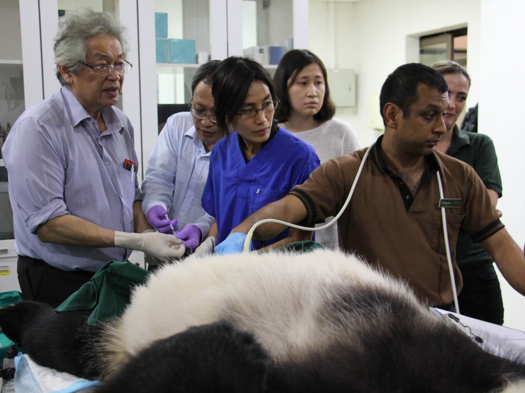 Kai Kai and Jia Jia were put together for natural mating on 30 March, following which artificial insemination was carried out to maximise the chances of breeding under human care. Professor Ng Soon Chye, an obstetrics and gynaecology specialist internationally renowned for his expertise in reproductive medicine, assisted River Safari’s veterinary team during the insemination process.