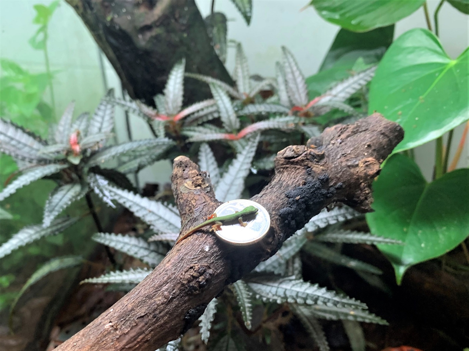 The baby Williams’ Dwarf Gecko is about the size of a 20-cent coin. This species is endemic to a very small area in Tanzania’s Kimboza and Ruvu forests, and lives exclusively on pandan plants.