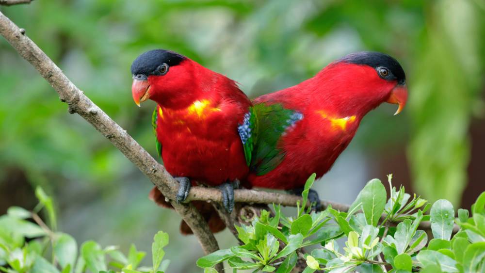The lory announces its presence with squeaky sounds as well as distinctive whistles and screeches like a bird of prey.