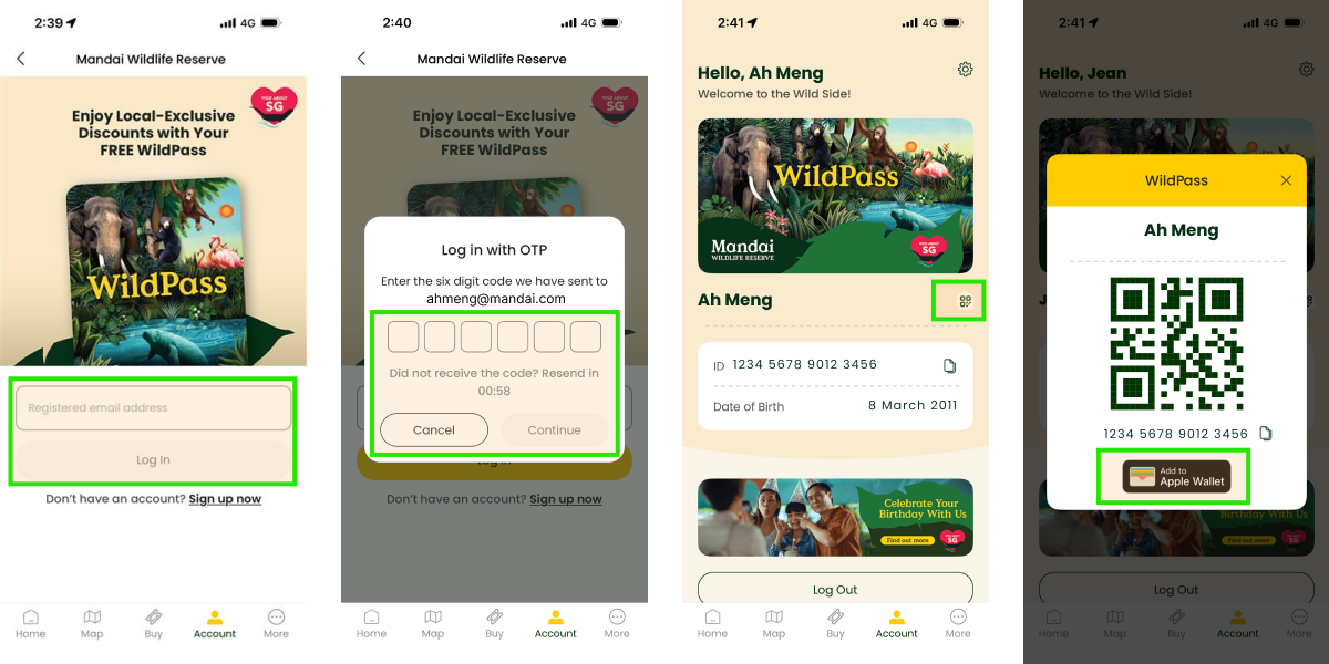 To enjoy WildPass discounts at F&B and Retail outlets, follow these steps on the Mandai app: