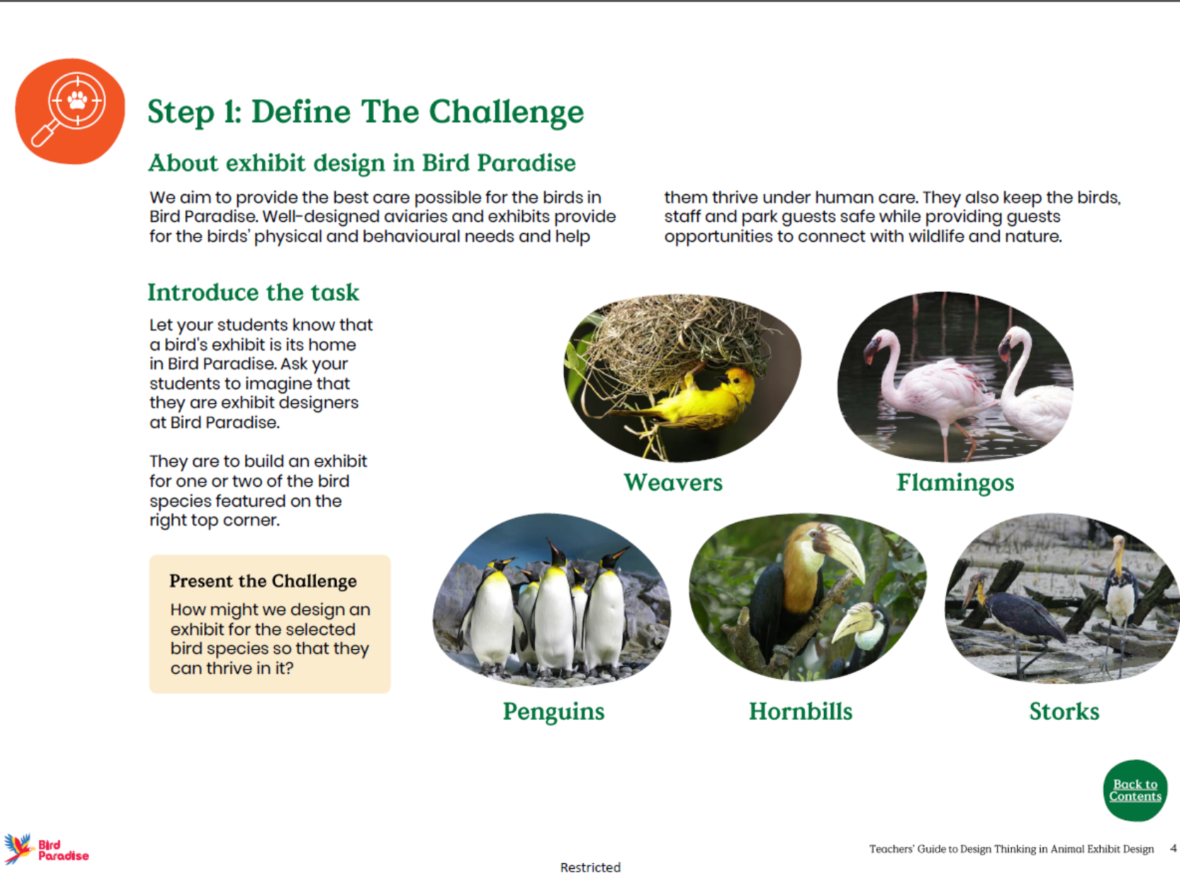 A guide for educators to conduct a learning journey using STEM skills and the Design Thinking approach to explore avian exhibit design at Bird Paradise.