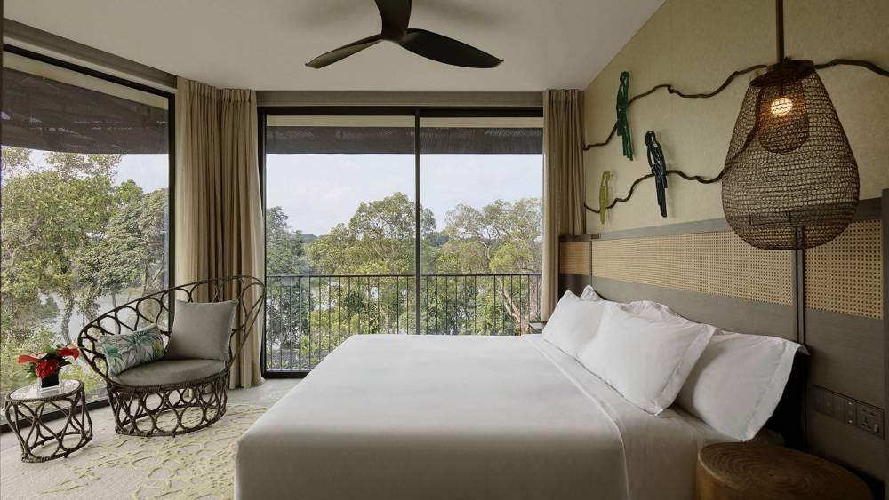 호화로운 킹사이즈 베드와 넓은 거실 공간을 갖춘 생츄어리 스위트에서 최상의 휴식을 누려보세요.