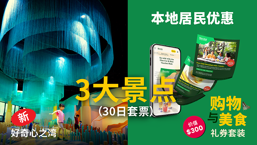 畅游3个景点,可享高达67折优惠及领取购物与美食礼券套装(价值 $300)